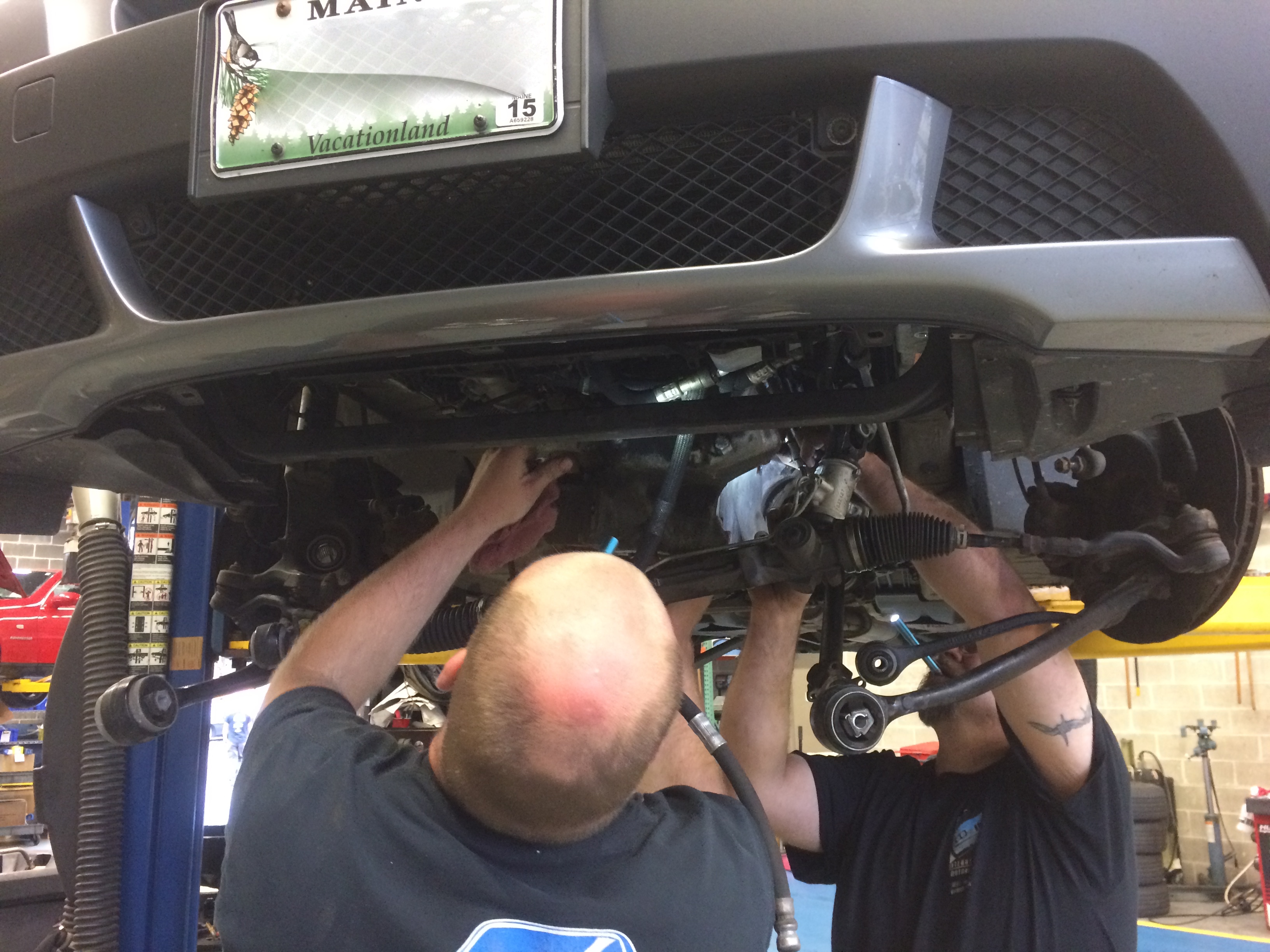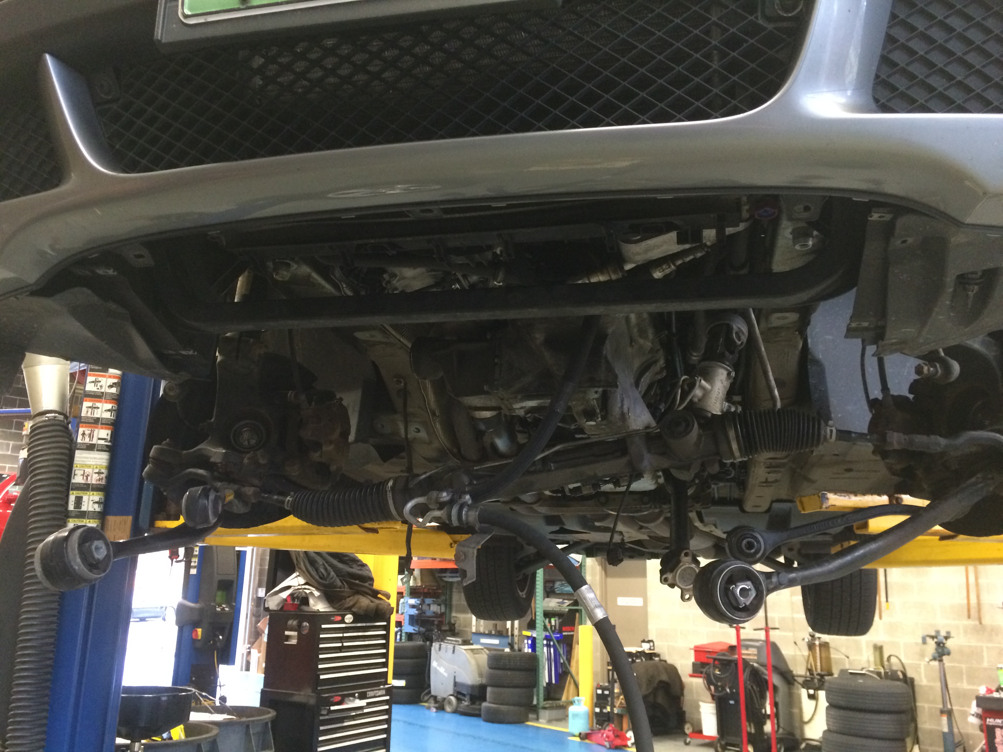 The good news is that we’ve developed a service protocol to fix it, the first time, and keep the parts kit on hand to do so. This is not a job for the new BMW tech, or the faint at heart, for it requires removal of front suspension subframe, drive axles, and suspending the engine in the air while the subframe is removed. We’ve developed to tooling to do this in efficient manner, without any stress on your auto, at a steep savings from the BMW new car dealer prices.